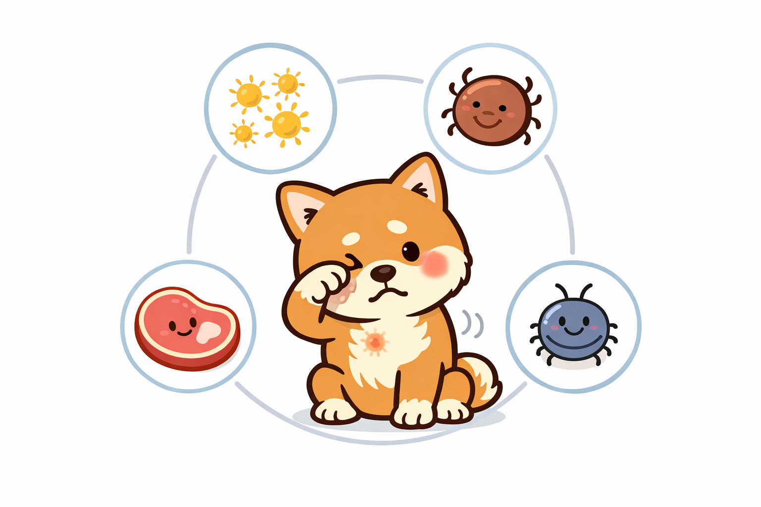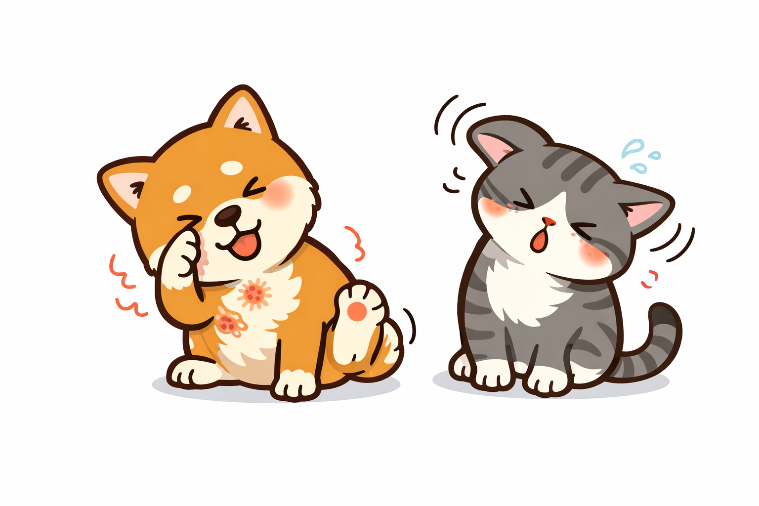 犬や猫は鼻水やくしゃみよりも、皮ふ症状として現れやすいのが特徴です。