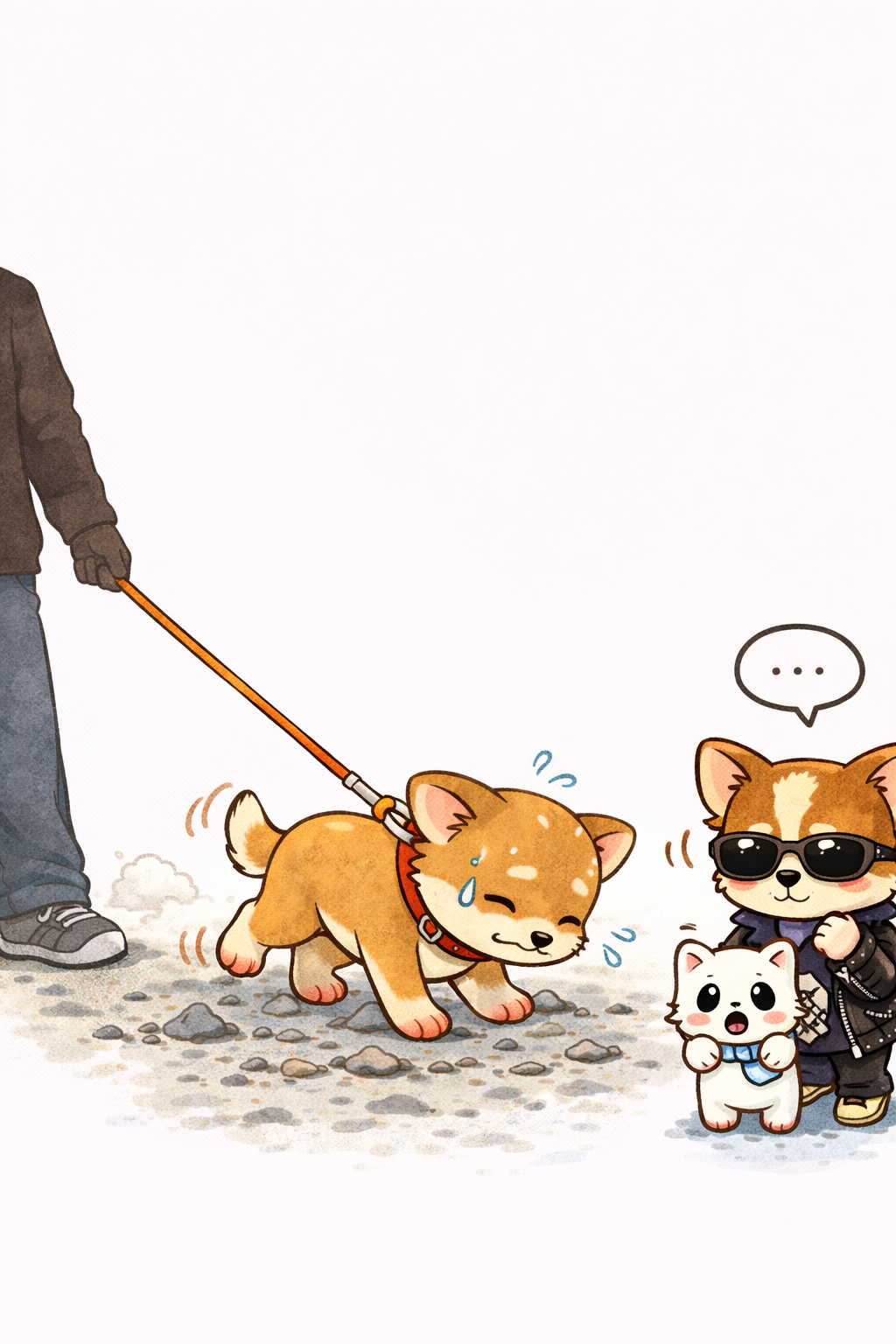 あの子の飼い主さんは、歩くことだけでいっぱいで、あの子を見ていなかったね。